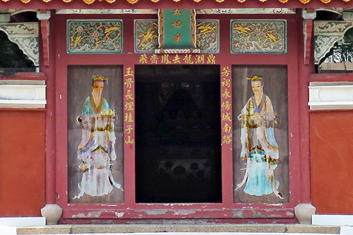 | 正殿の廟の扉に描かれた仕女。 |