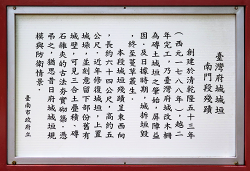 | 台湾府城城垣南門段殘蹟の説明。 |
