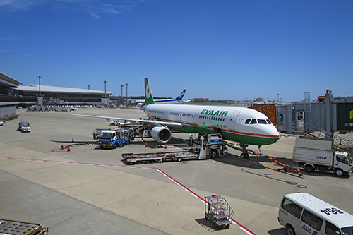 12:45 エバー航空 BR107便 成田国際空港 定刻発。